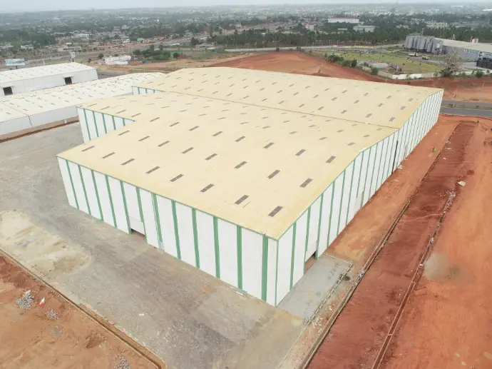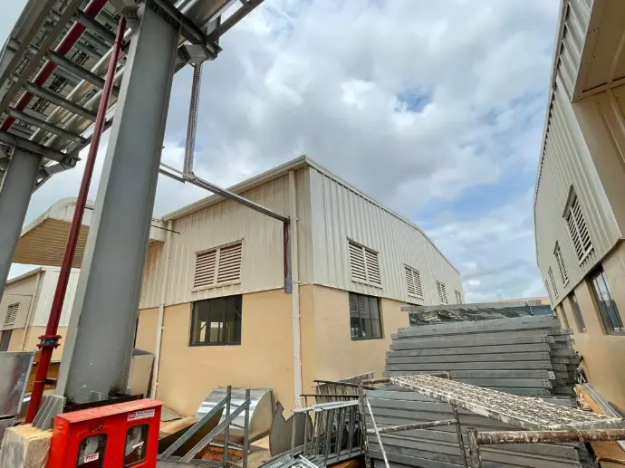 Construction of a metal structure warehouse with an area of 5600 m2 and a height of 7m dedicated to the textile department of the PIA for training in textile manufacturing and garmenting as well as the construction of 4 toilet blocks adjacent to the training warehouses dedicated for trainees and educators.