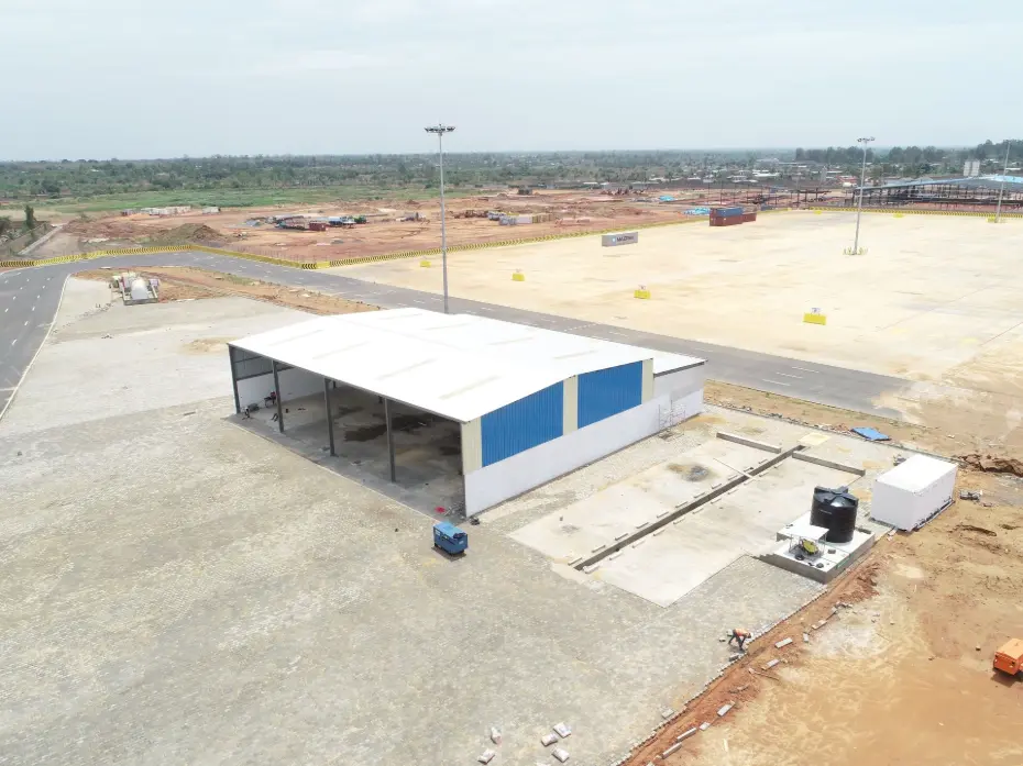 Construction of a heavy machinery maintenance workshop dedicated to the dry spot of the Adétikopé industrial platform over an area of 800 m², a washing workshop and a fuel station area as well dedicated to the PIA inland container depot machinery and services.